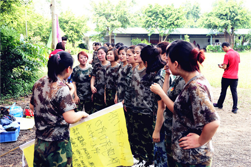 “同样的一块铁,可以锯融消损,也可以百炼成钢;同样的一支队伍,可以碌碌无为,也可以成就大业”。一个团队,团结和凝聚是制胜关键!现场24名萱姿人分为两大团队——齐心队和冲锋队,在队名、队呼等团队文化构建完毕后,教练开始成果验收。齐心队和冲锋队的每个队员在风采展现时个个精神抖擞,即使顶着酷夏但热情丝毫不减,将萱姿人独有的坚韧、坚持与坚守精神发挥得淋漓尽致。